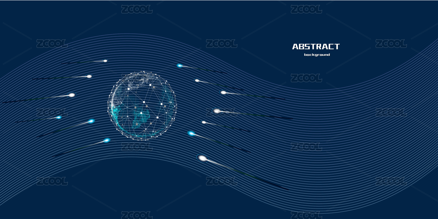 点线面组成的世界地图、全球合作、未来科技、海报背景。