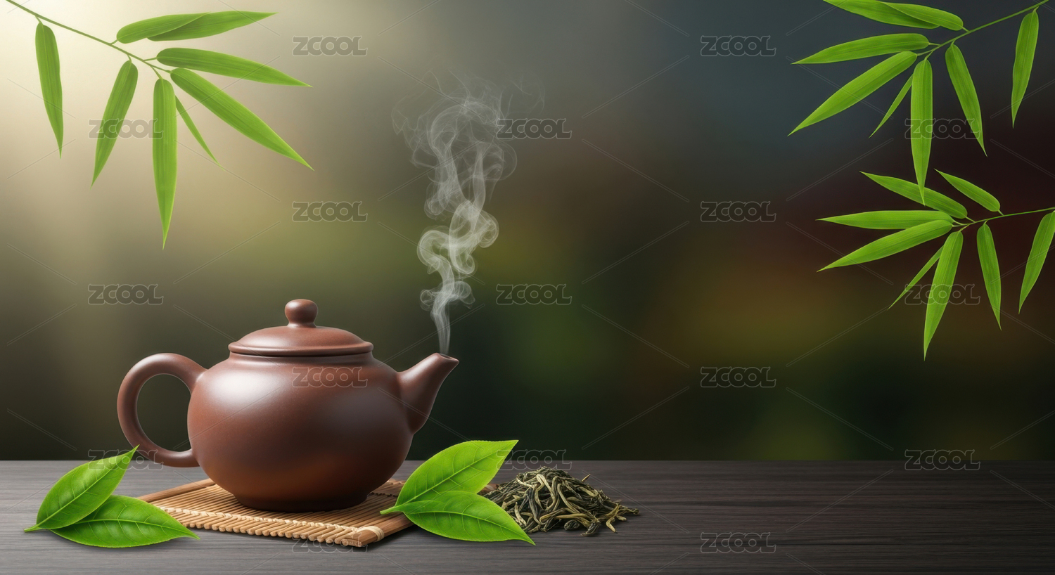 茶壶,茶杯,热气,茶道,宁静,温暖,放松,光线,绿色,植物