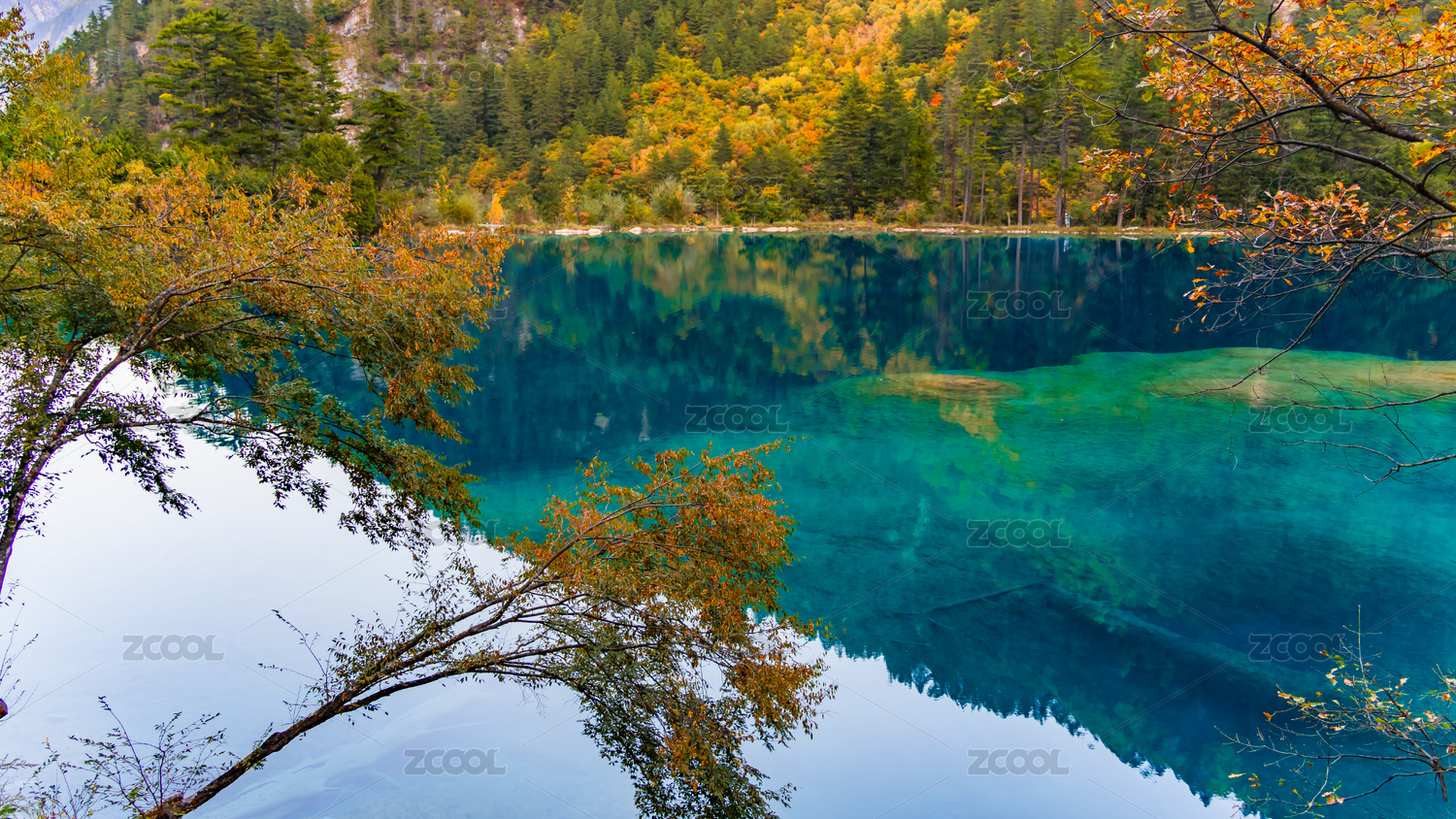四川九寨沟五花海秋景彩林