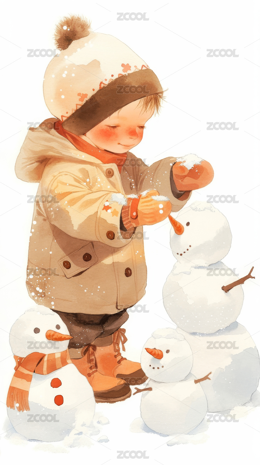 户外,天空,寒冷,冬天,帽子,童年,大雪,女孩,卡通,幸福