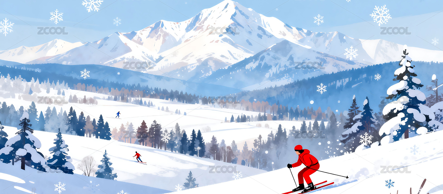 冬天,扁平化设计,绘制,卡通,风景,滑雪运动,人群,设计,运动,可爱风