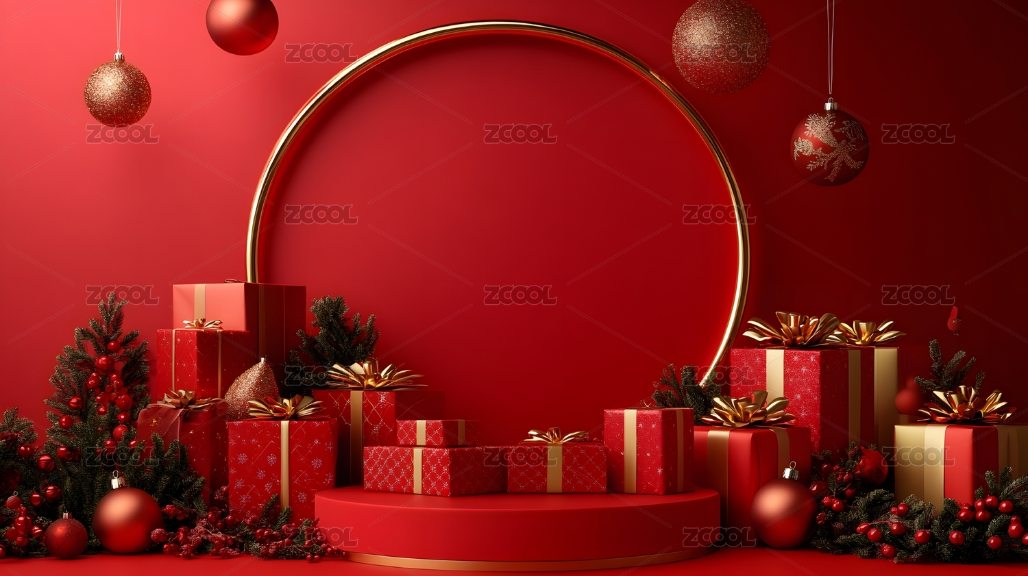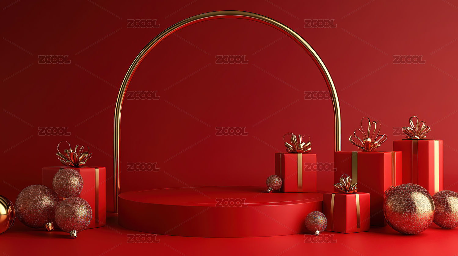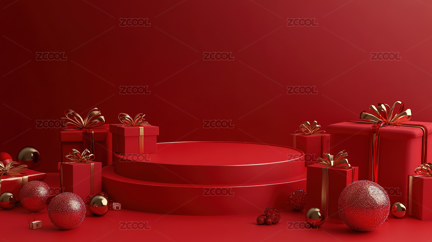 红色节日主题电商产品展台背景