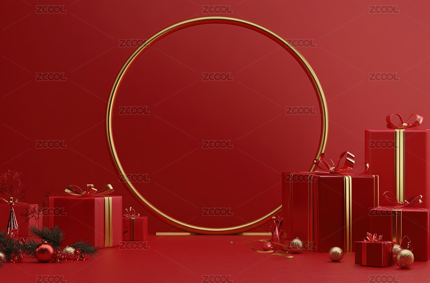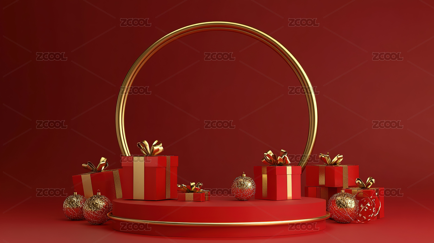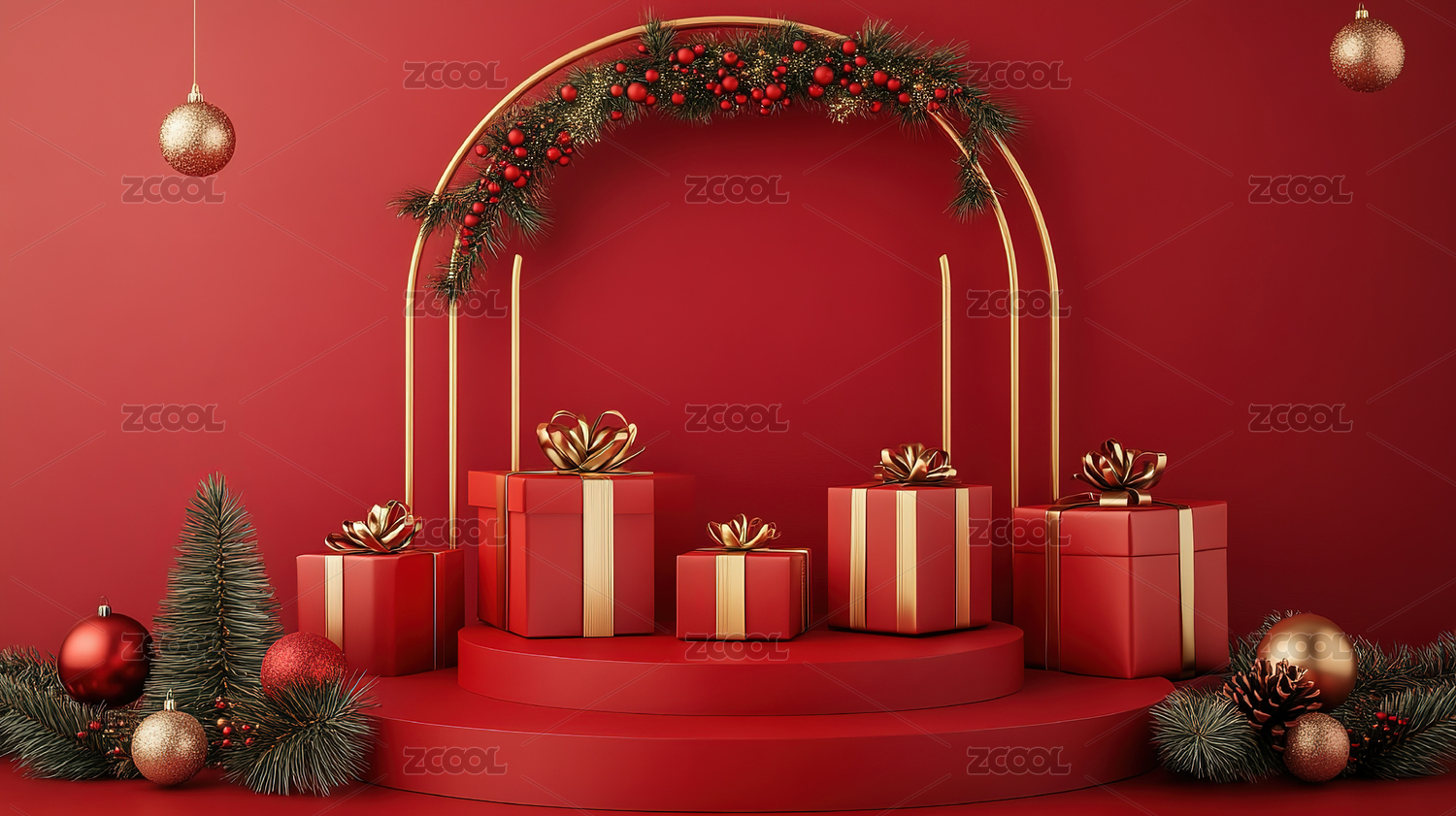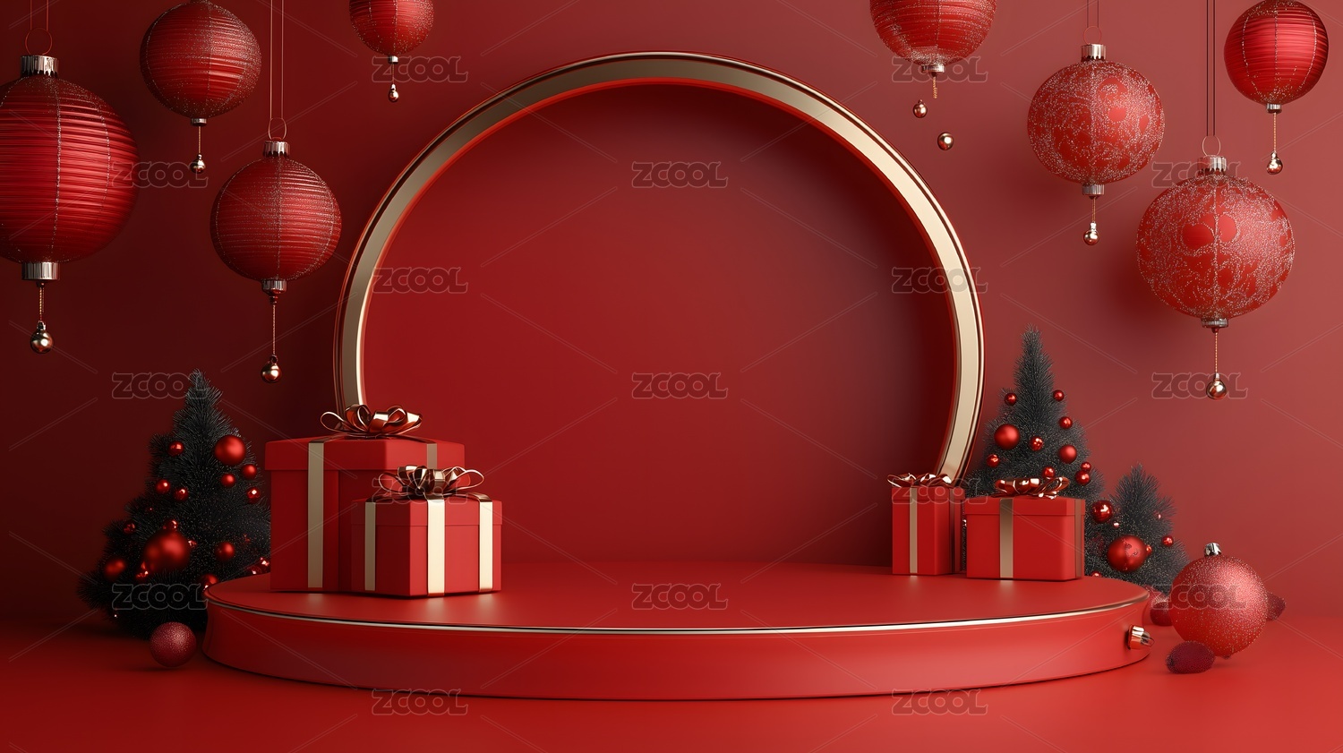红色节日主题电商产品展台背景