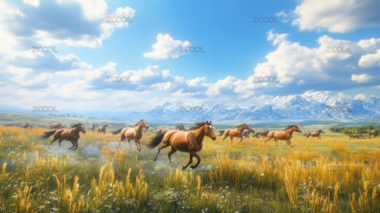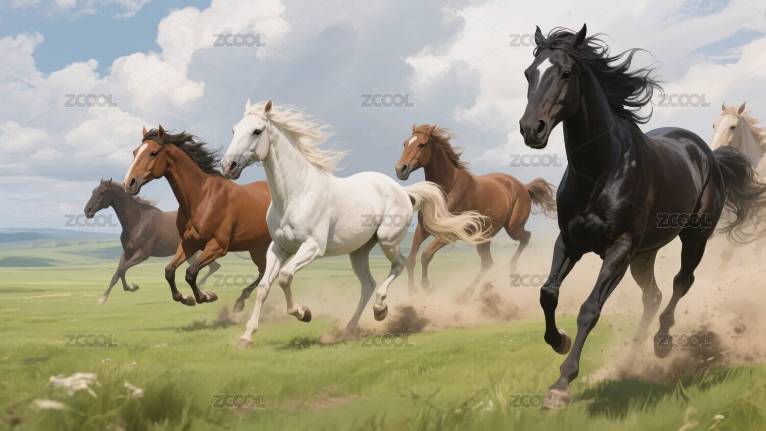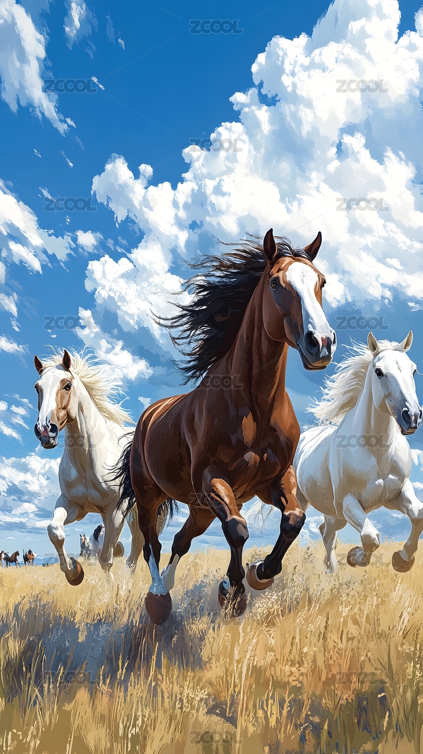 奔腾的野马群