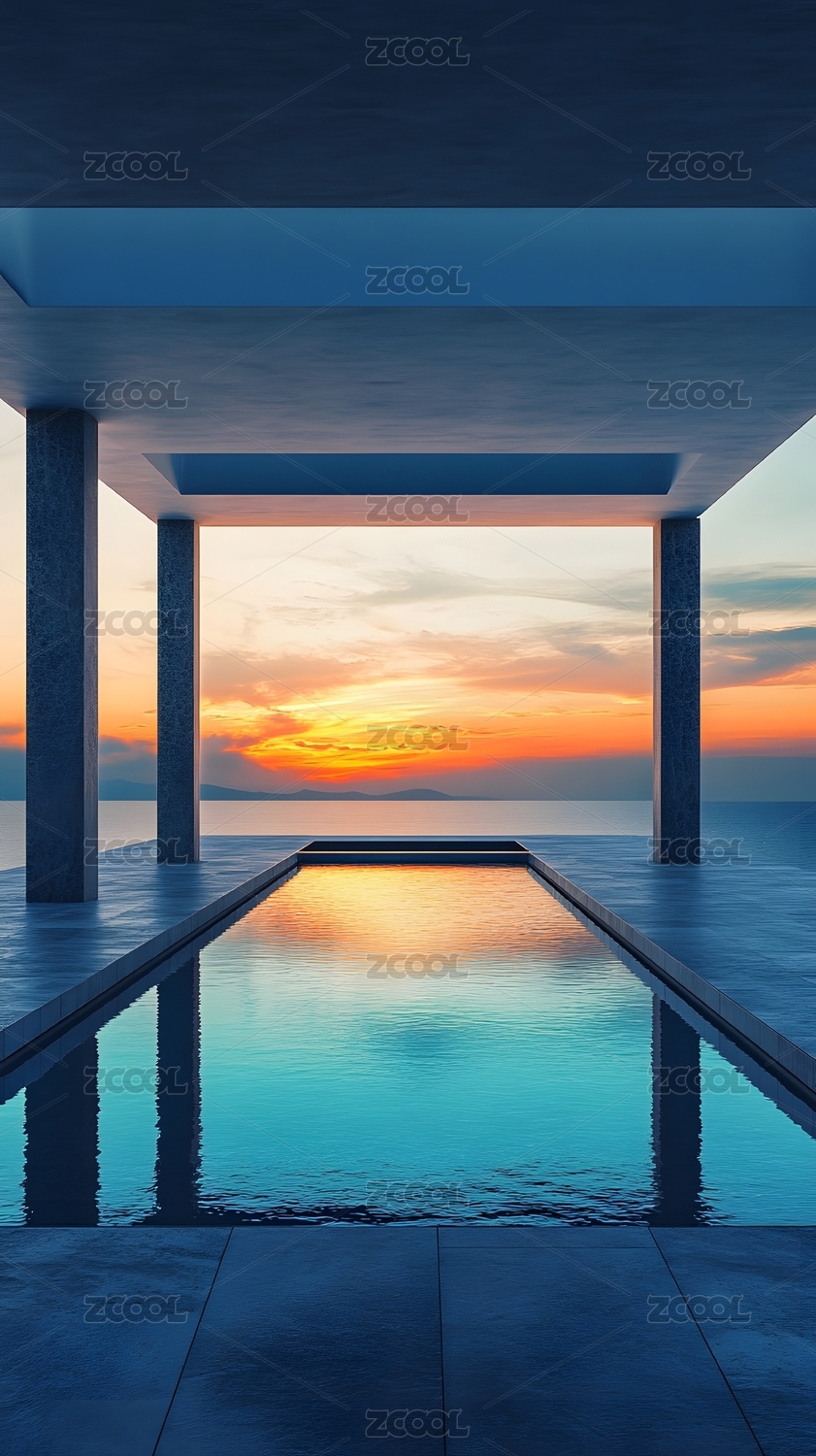 日落时分的海景泳池