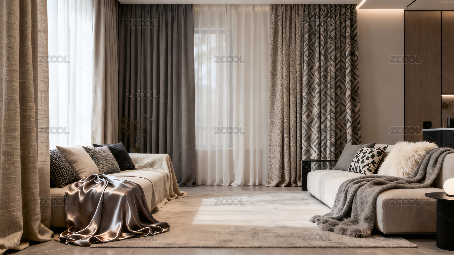室内,沙发,窗帘,家居,静物,黄色,灰色,简约,现代,明亮