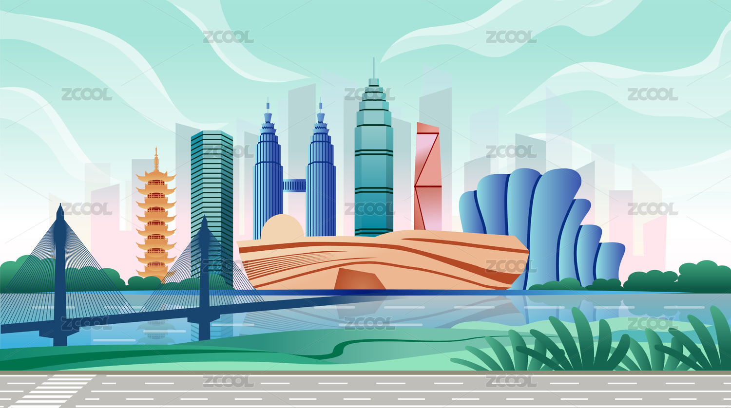 中国,浙江省,绍兴市,城市,风景,地标,建筑,天际线,矢量,插画