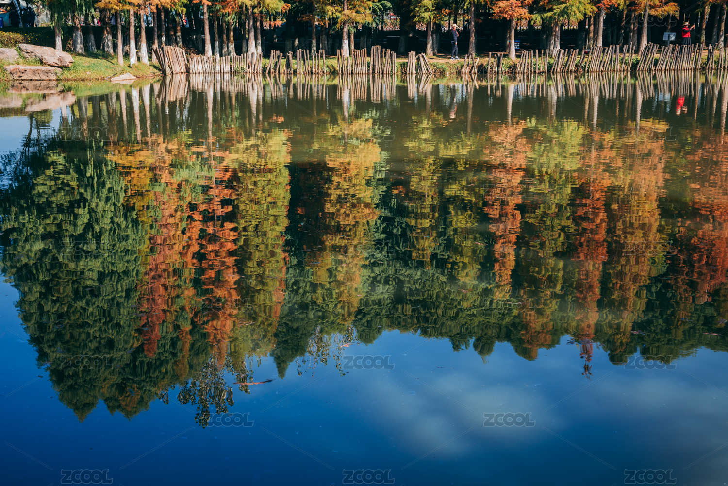 秋日水畔斑斓落羽杉