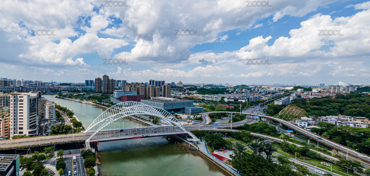 东莞水道特大桥和龙湾湿地乐跑公园风光航拍