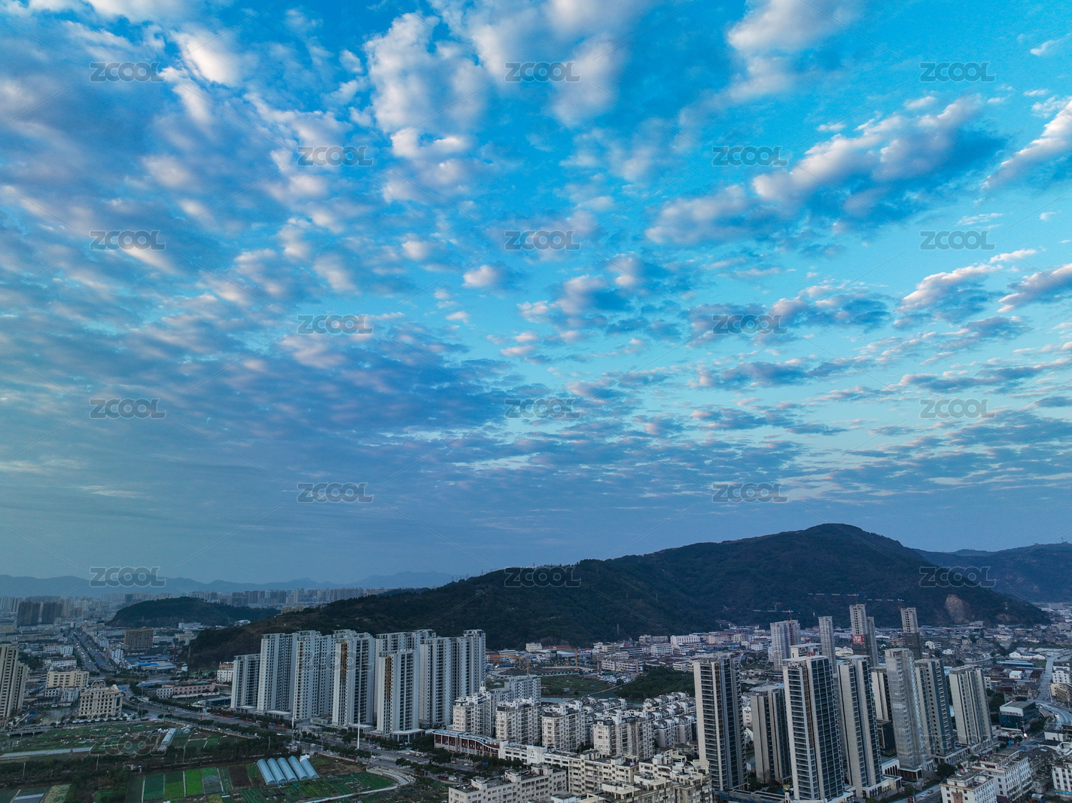 福建宁德霞浦县城日落晚霞城市建筑山水风光