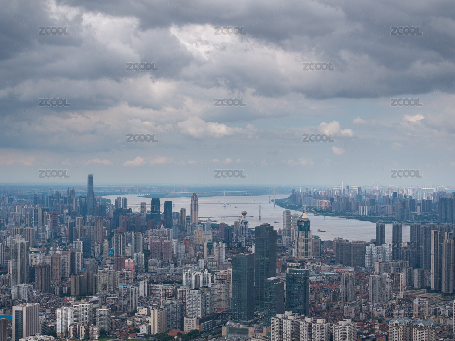 湖北武汉汉口阴云天气城市航拍