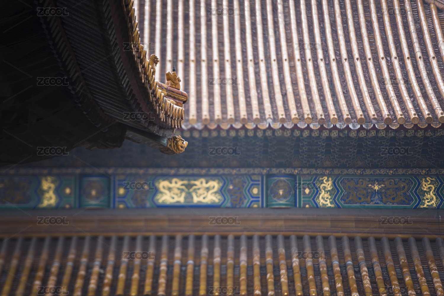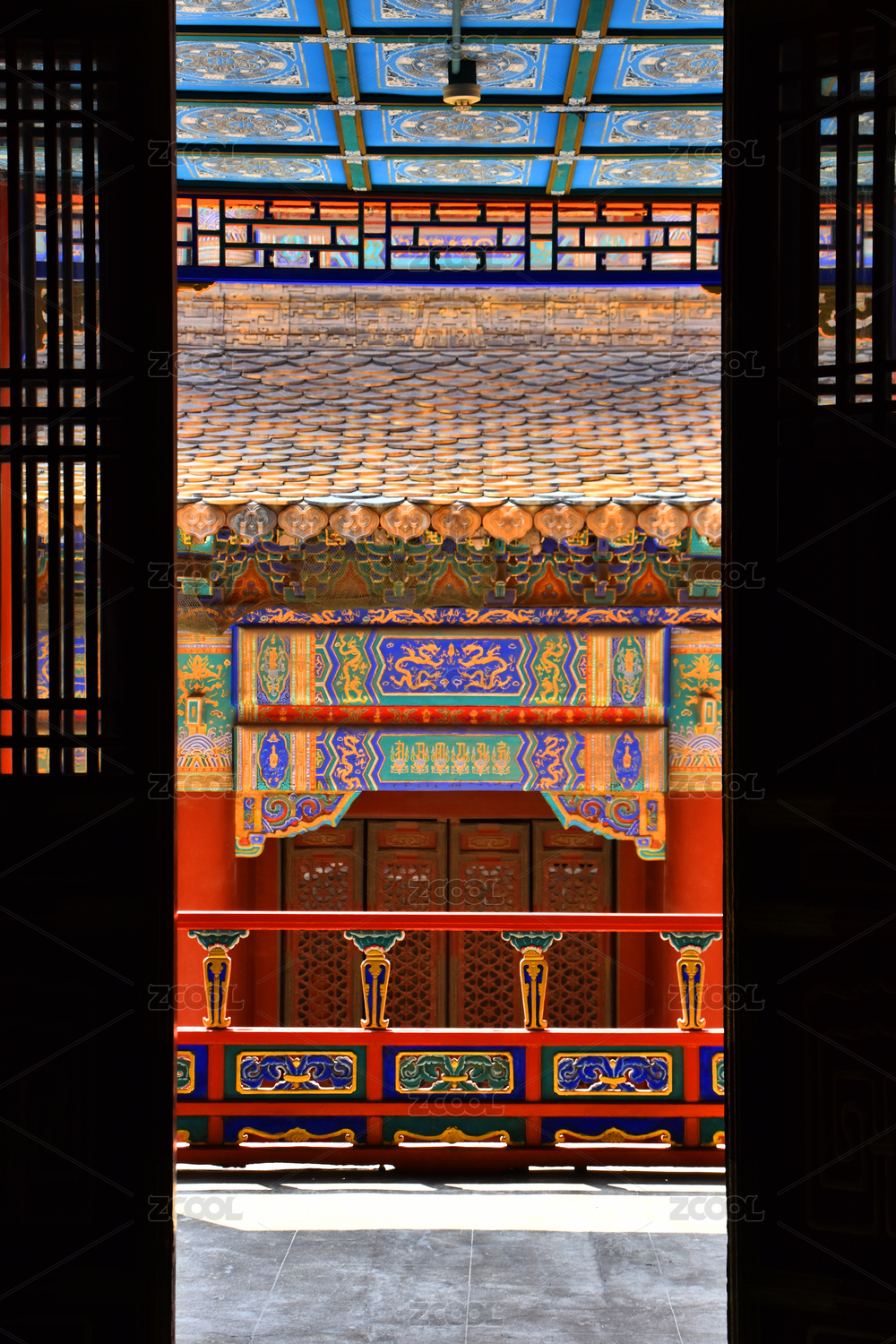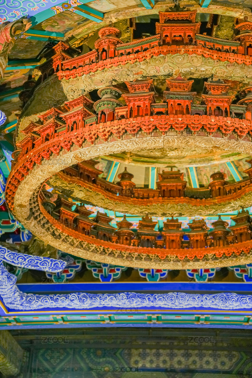 紫禁城故宫御花园万春亭斗拱内饰与光影