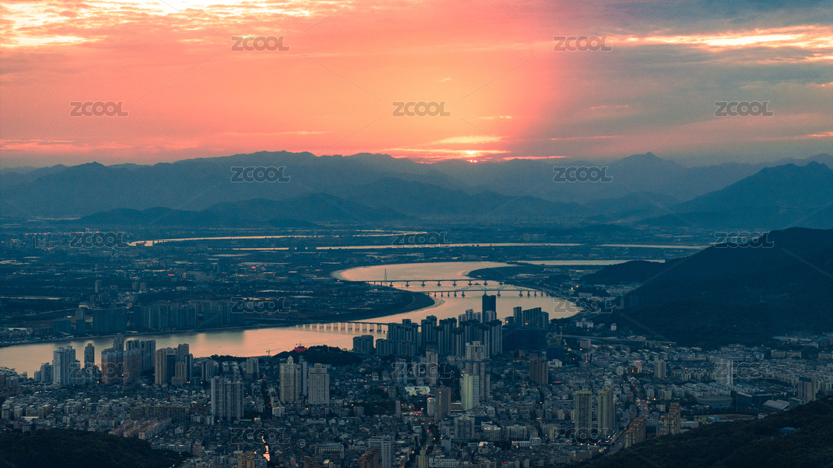 日出时刻的临海市