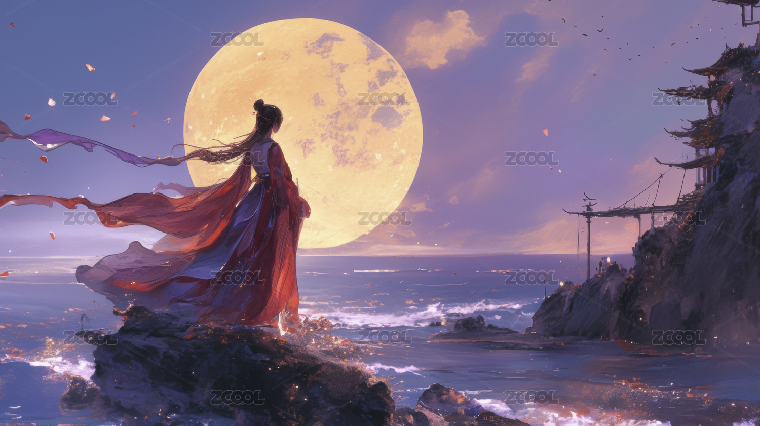 中秋,嫦娥,月亮,剪影,夜晚,神话,故事,仙子,天空,夜色