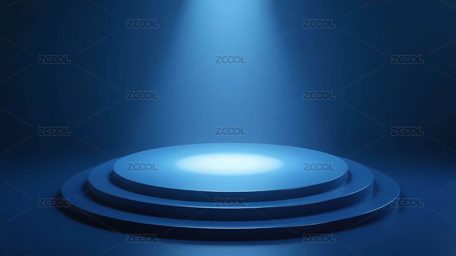 科技风,梦幻,唯美,三维,场景,舞台,蓝色,光影,光束,圆形
