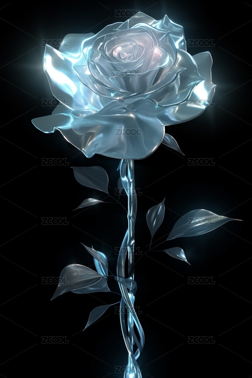 3D立体透明玻璃三维质感光感蓝玫瑰花