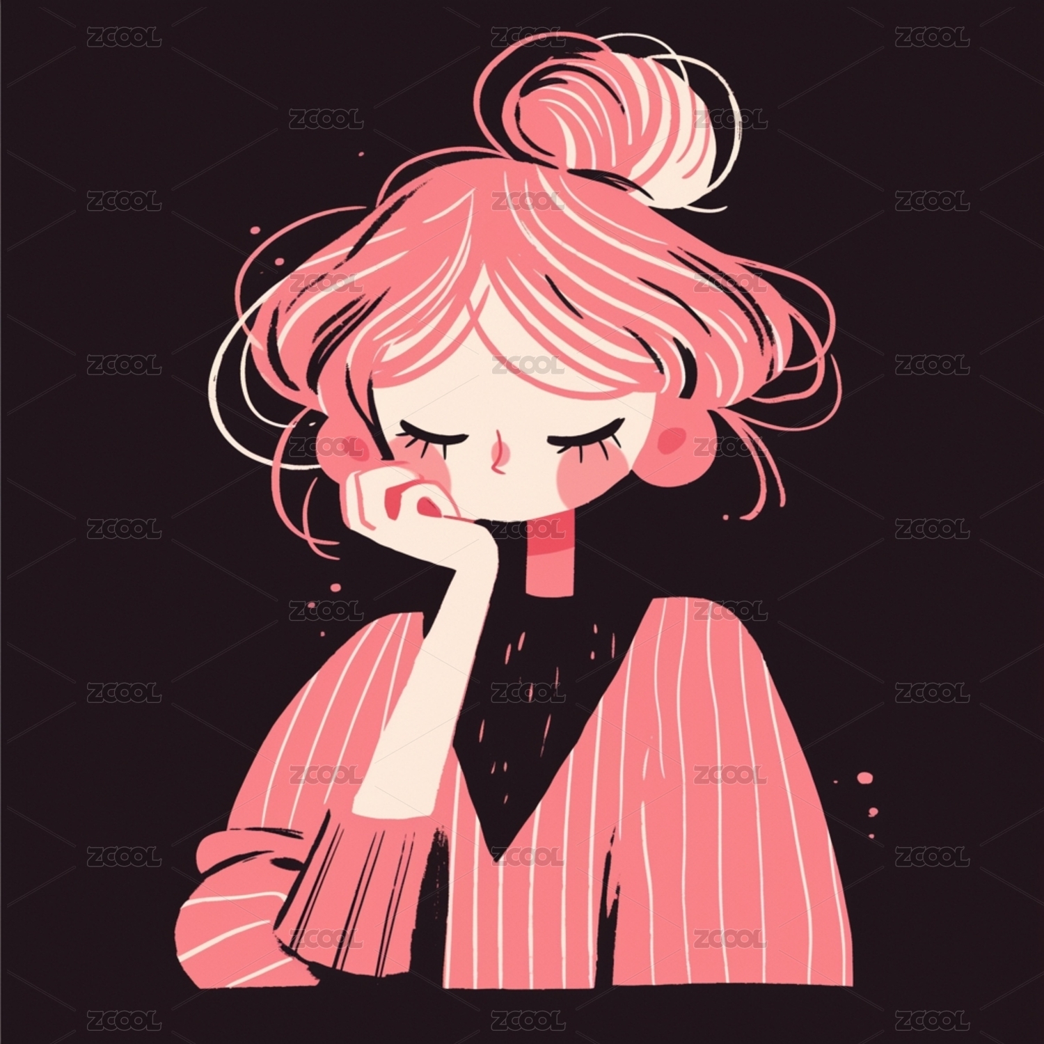 粉红少女时尚肖像大头照矢量扁平化设计背景