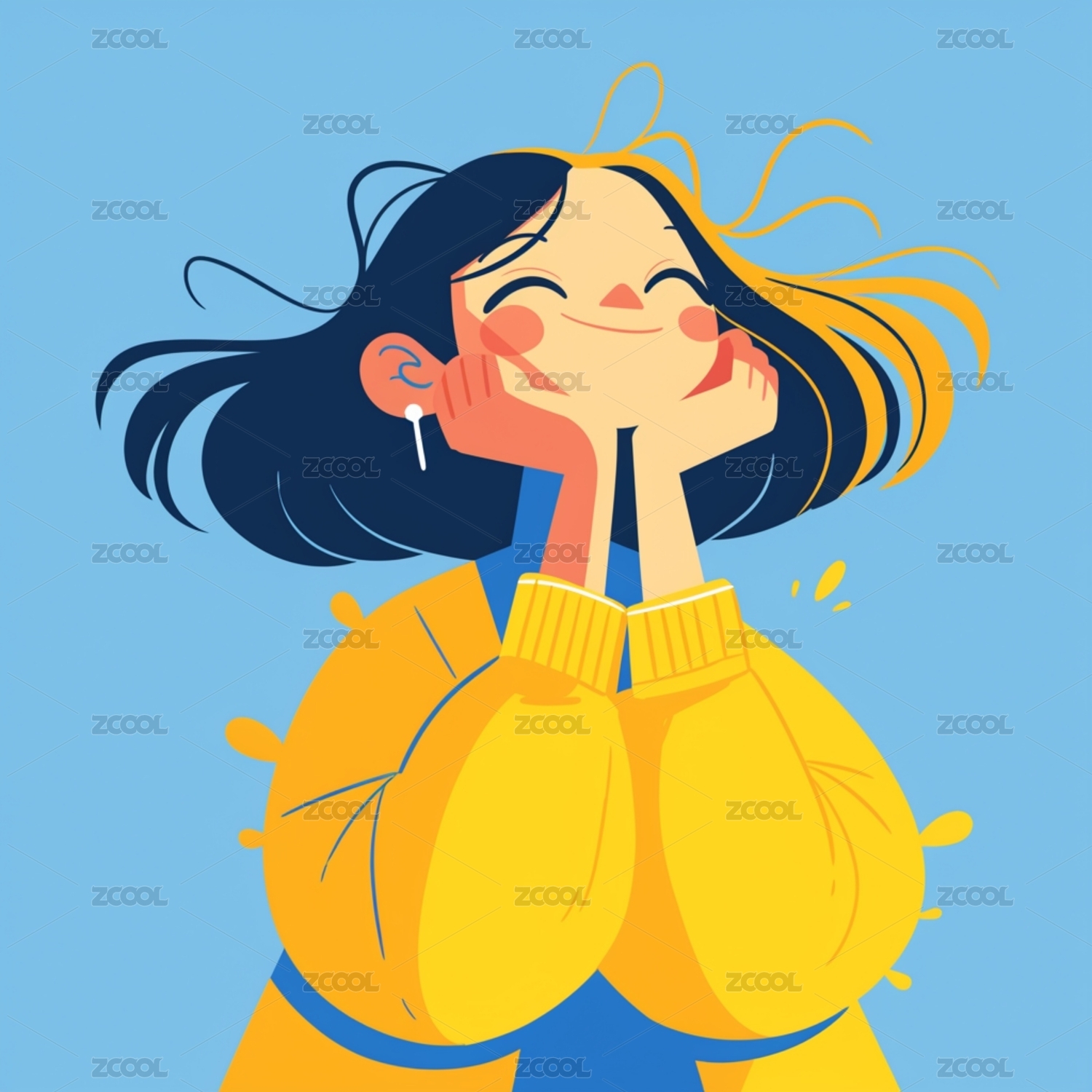 黄蓝少女时尚肖像大头照矢量扁平化设计背景
