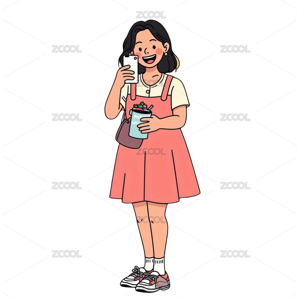 拿着奶茶果茶的女学生粉色可爱