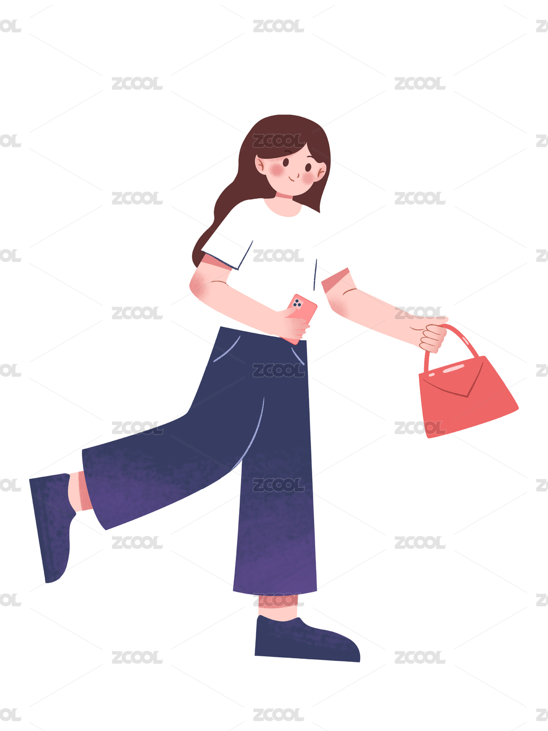 拎包走路购物的女孩