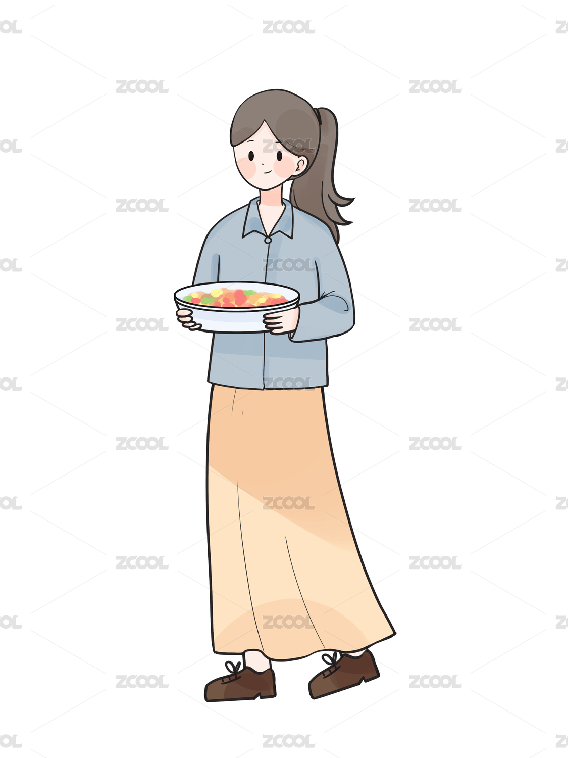 端着菜的女生