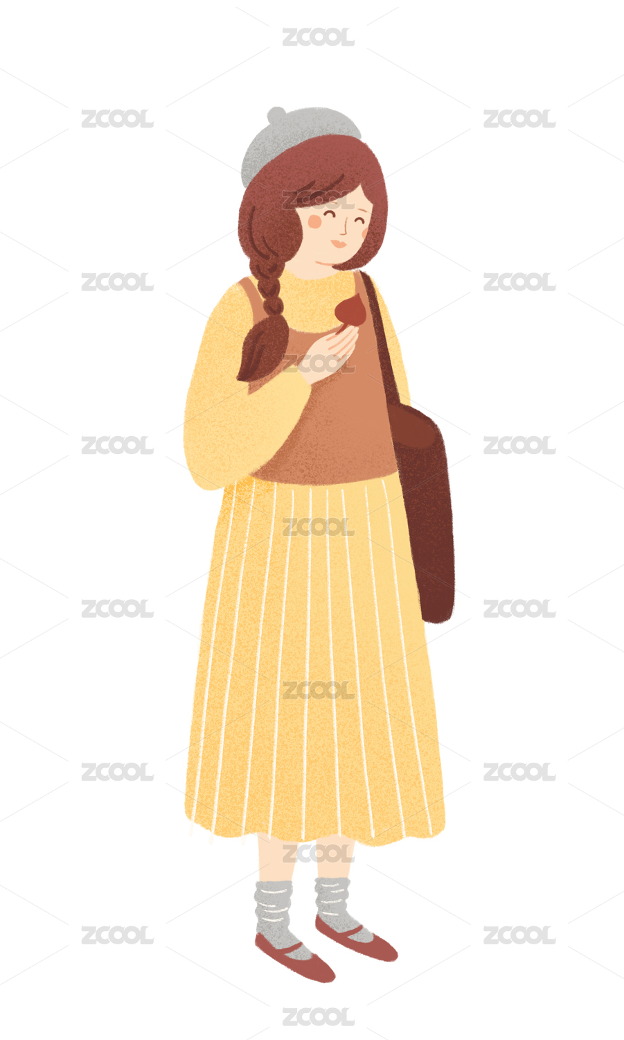扁平风描边小清新少女人物