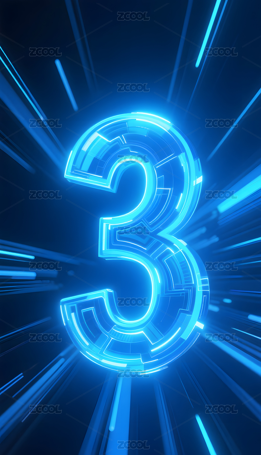 蓝色科技风数字3光效背景