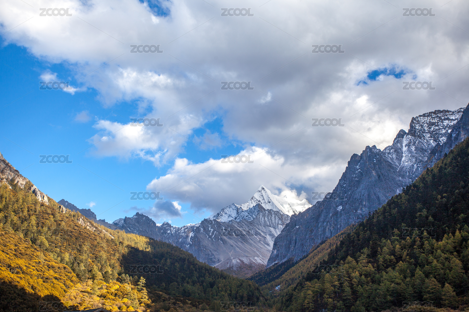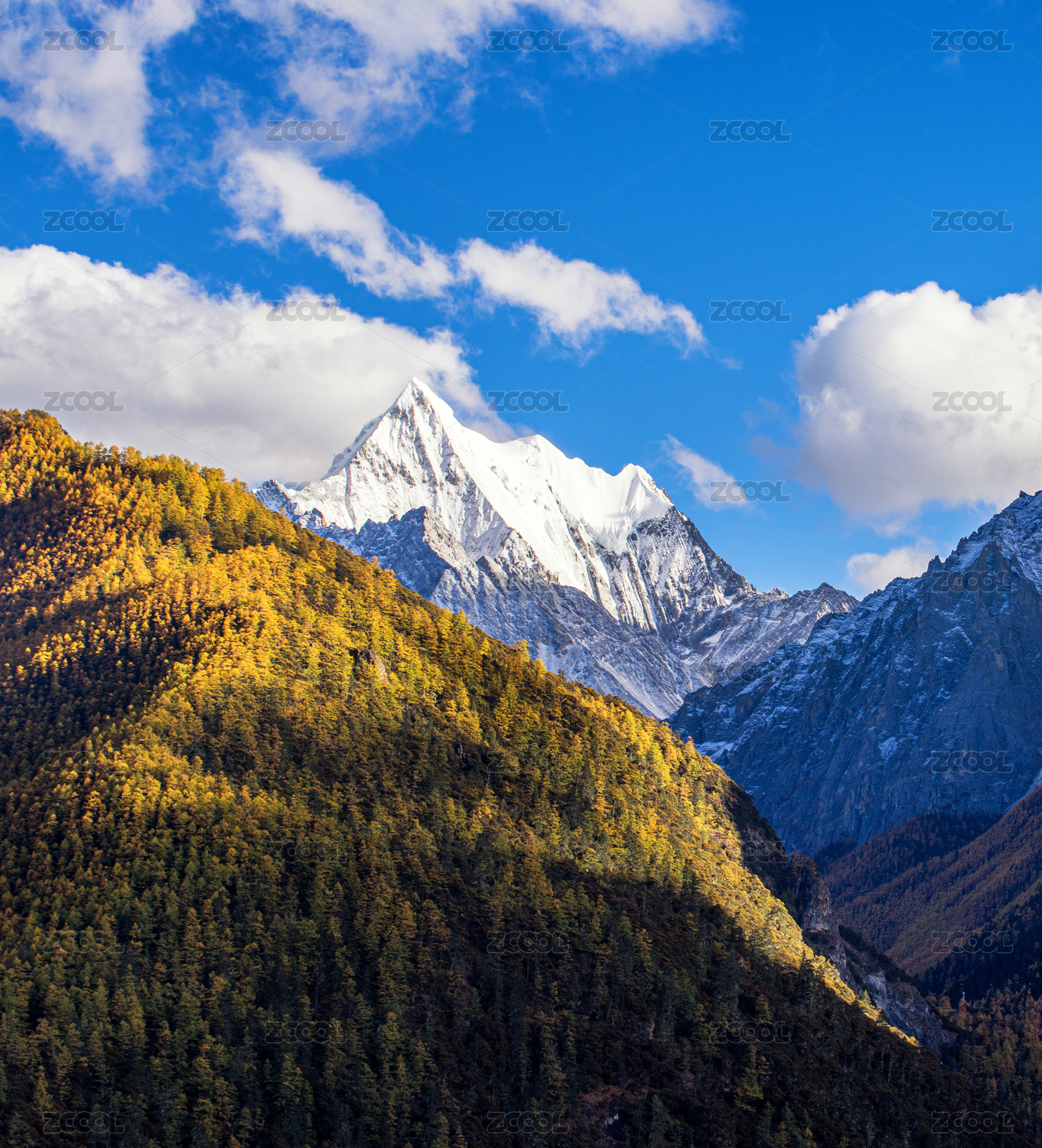 中国四川省稻城亚丁风景区的夏诺多吉圣山秋季风光