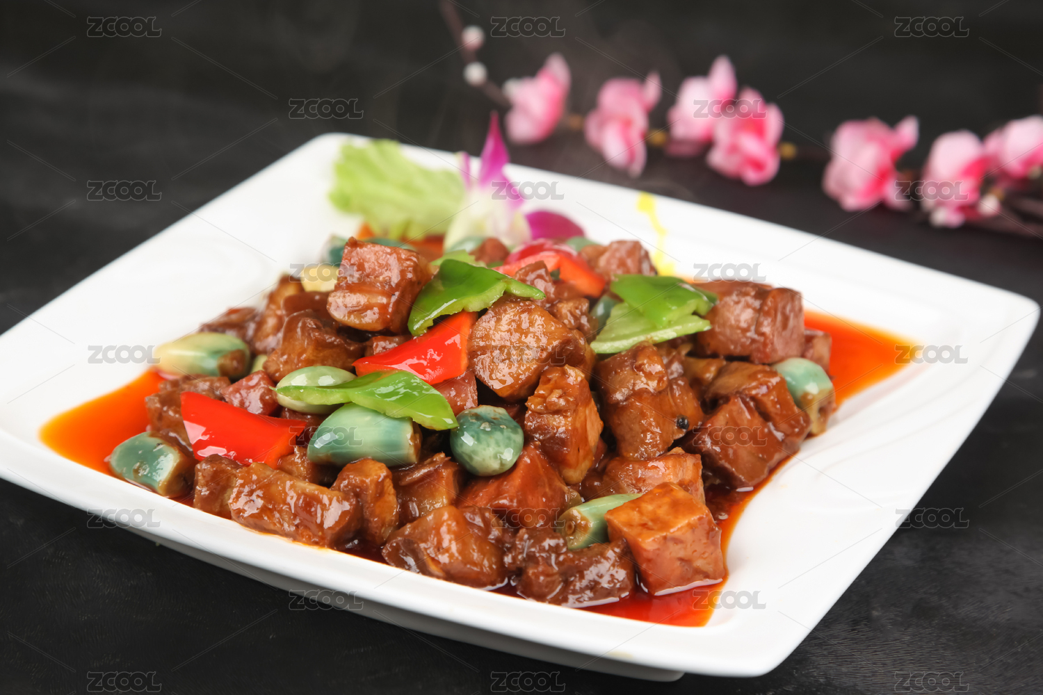 江西特色菜品井冈山豆皮烧肉盛放在白瓷碗里