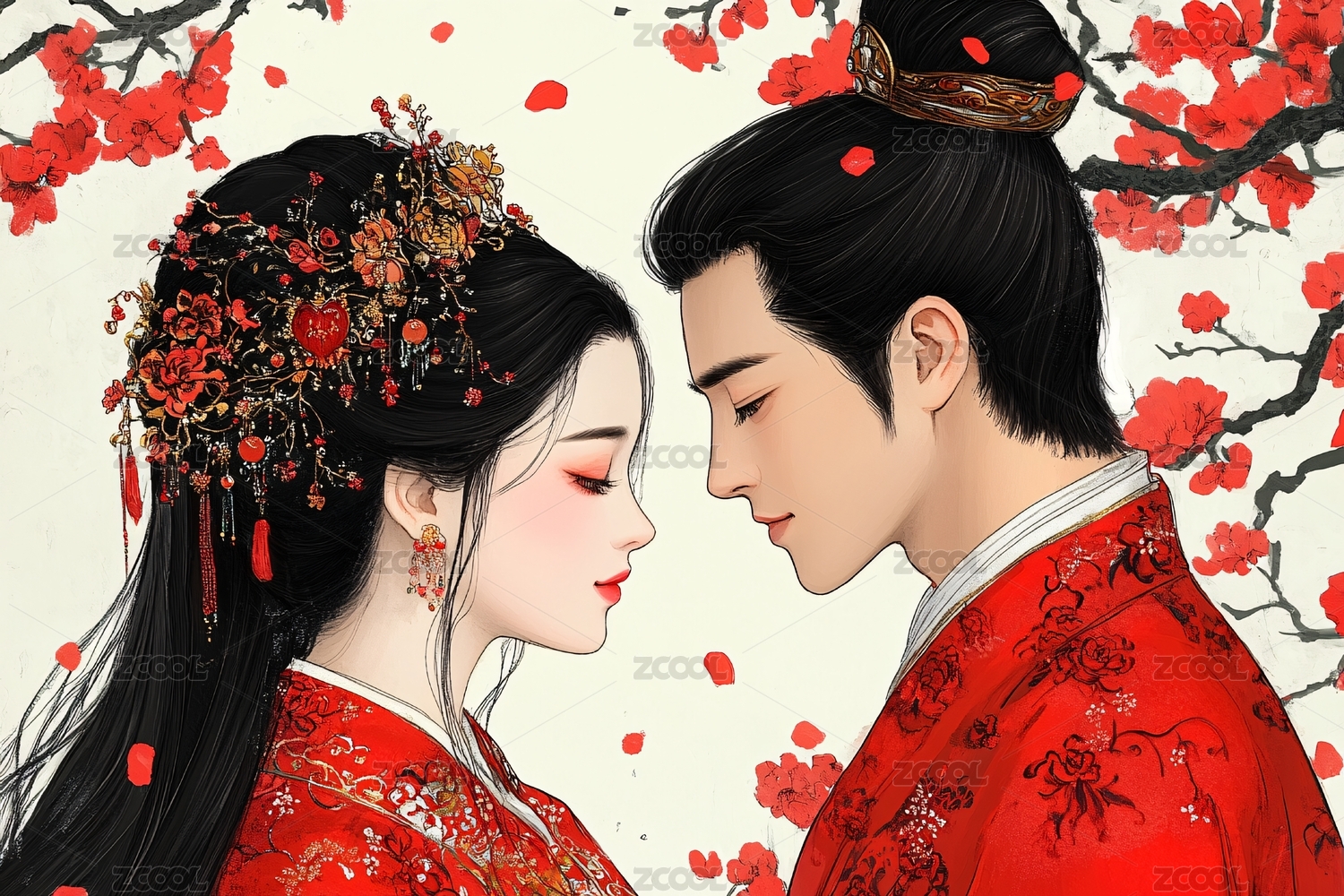 古风中式新婚情侣插画