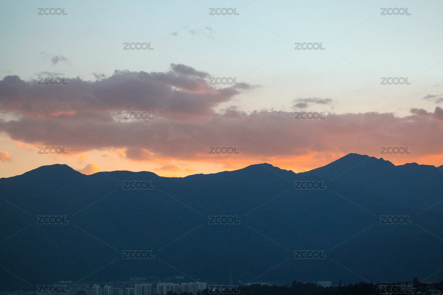 浙江台州5A景区天台山脉城郊雨后的晚霞