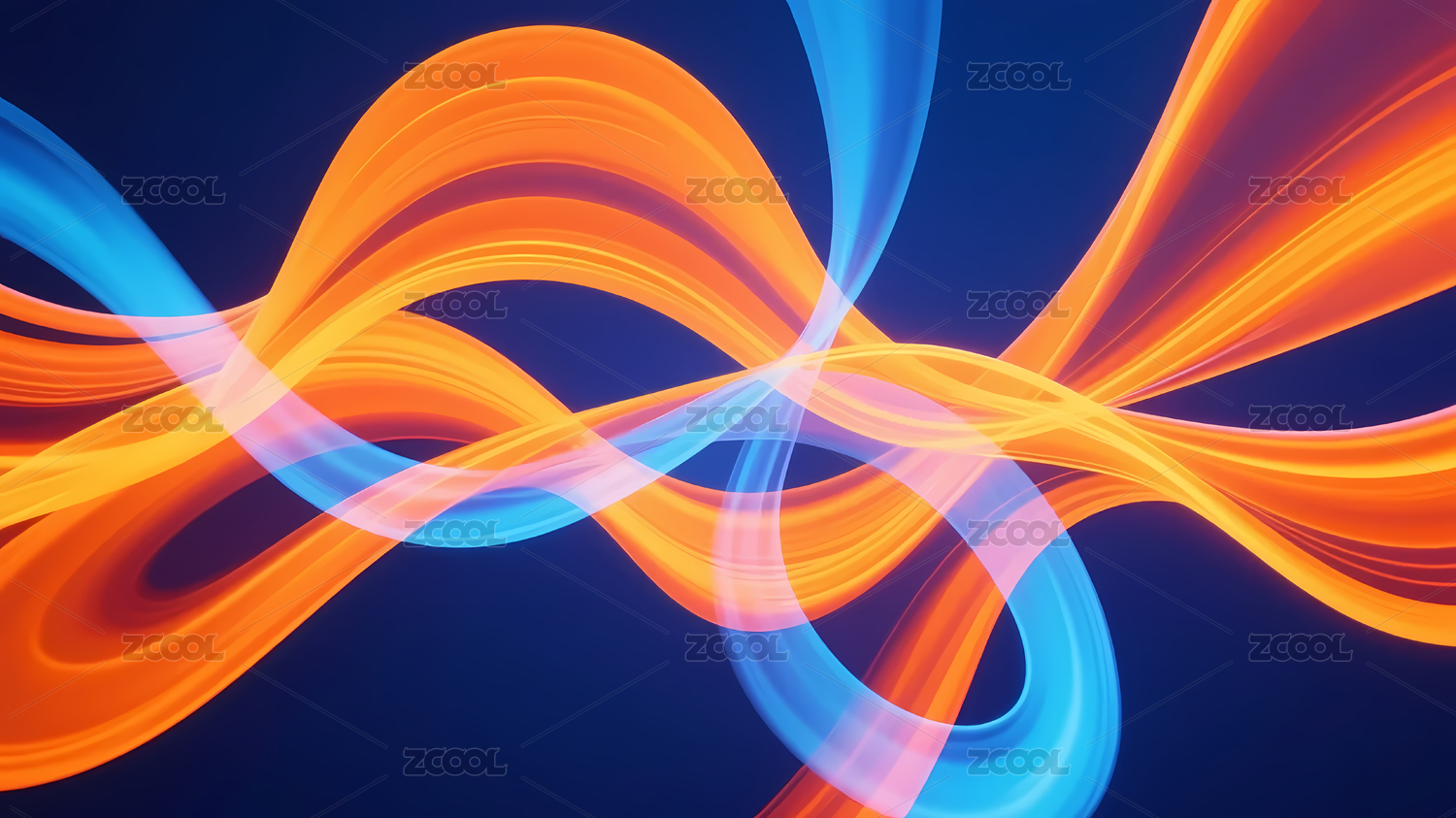 橙蓝流动曲线深蓝背景