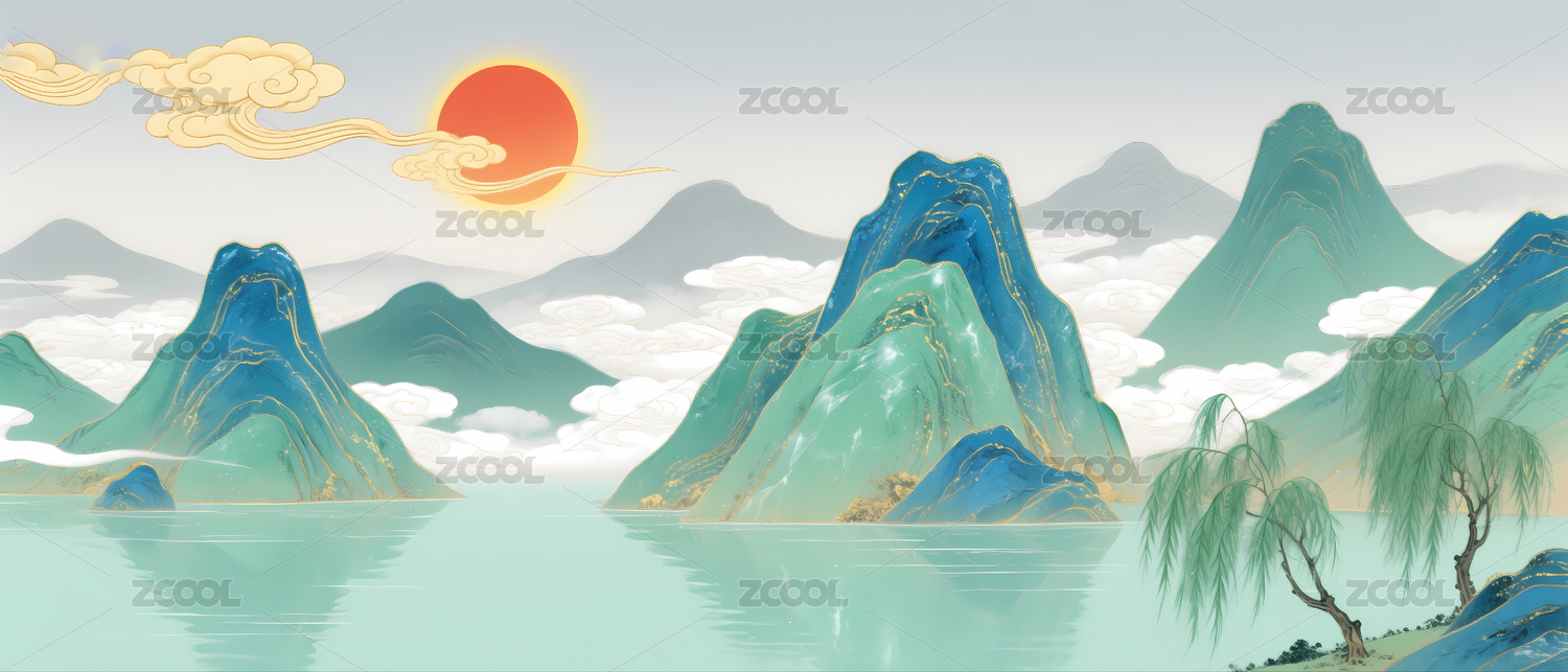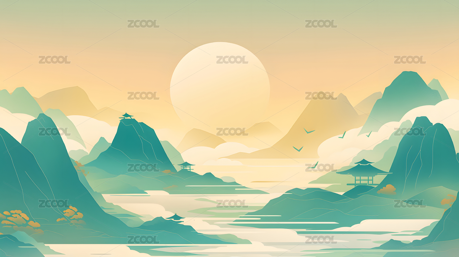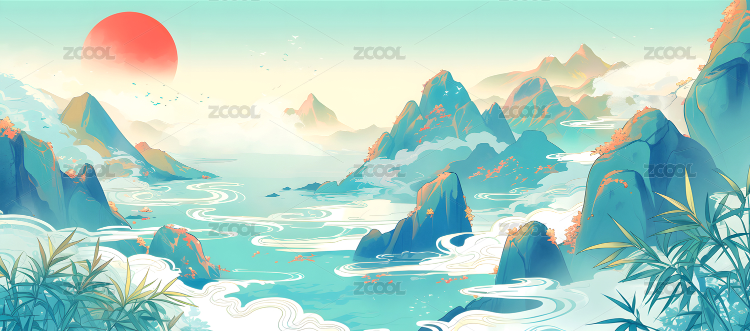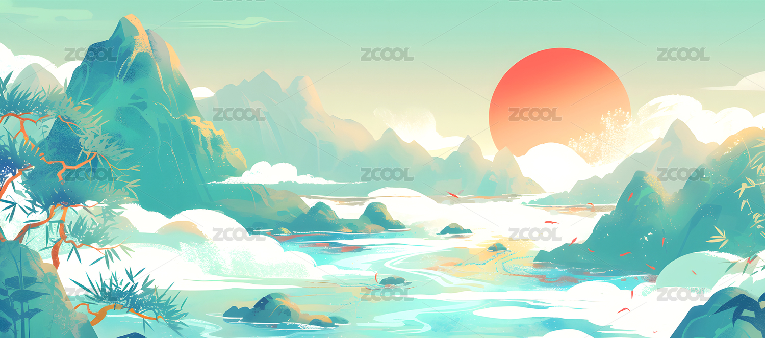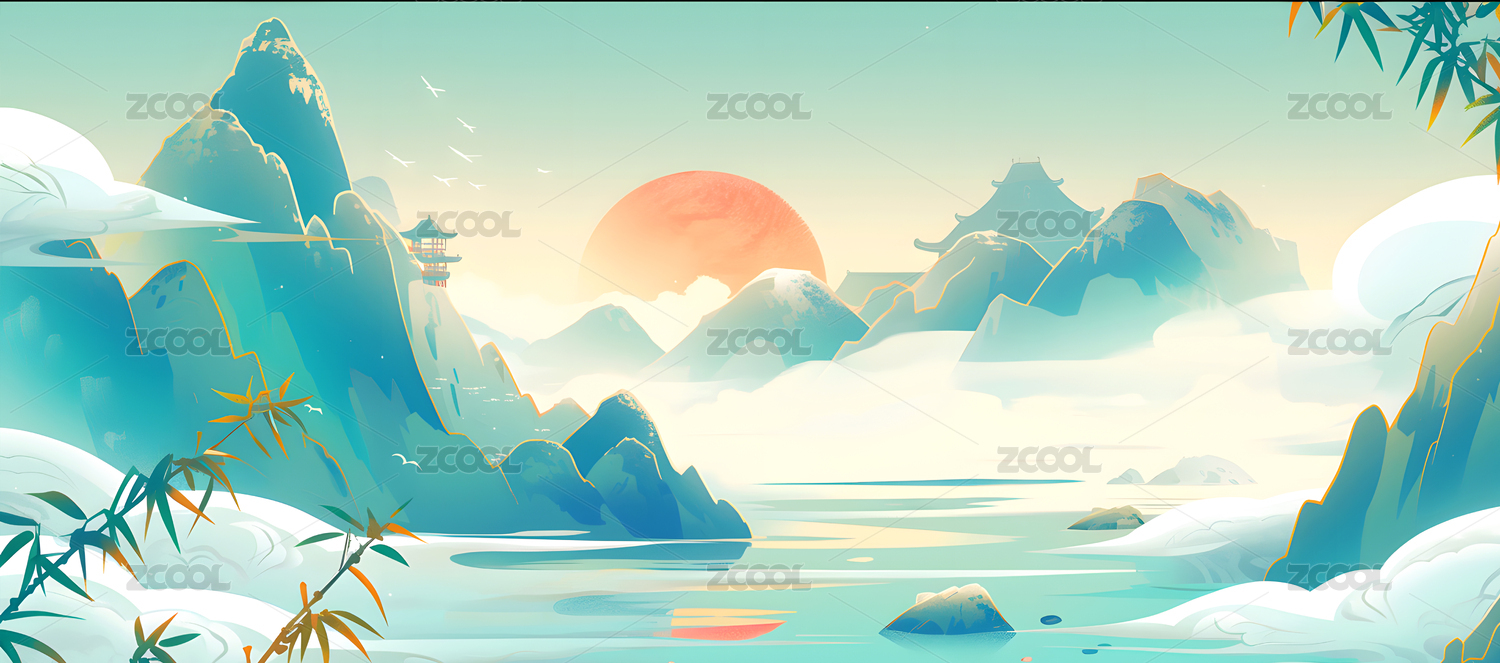 商务,插画,商业,中式,节日,唯美,天空,互联网,风景,水