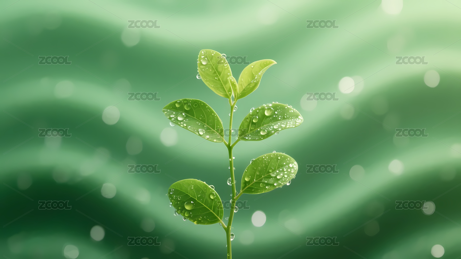 带水珠的绿色枝叶插画