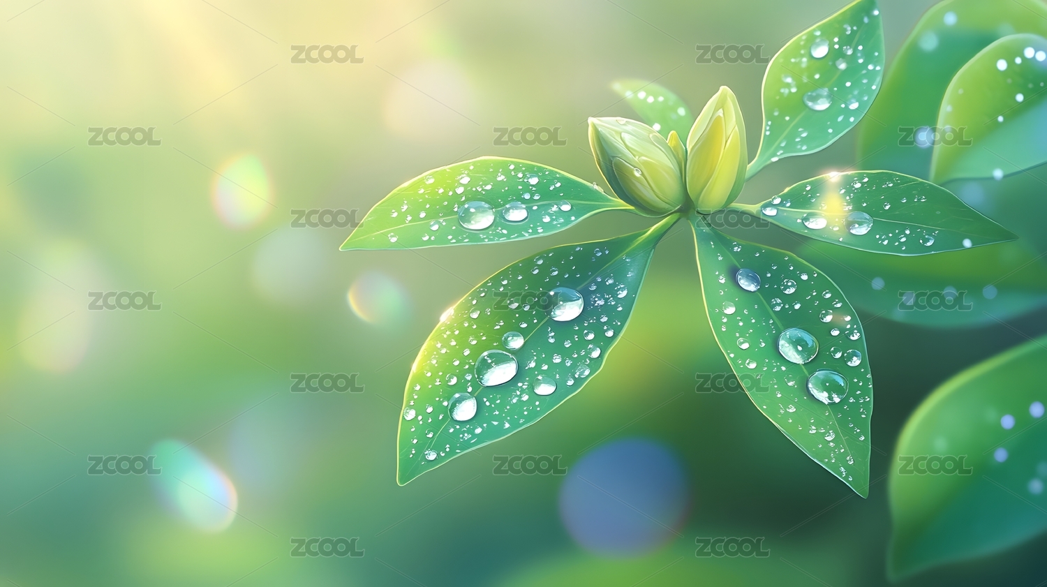 嫩绿植物叶上水珠