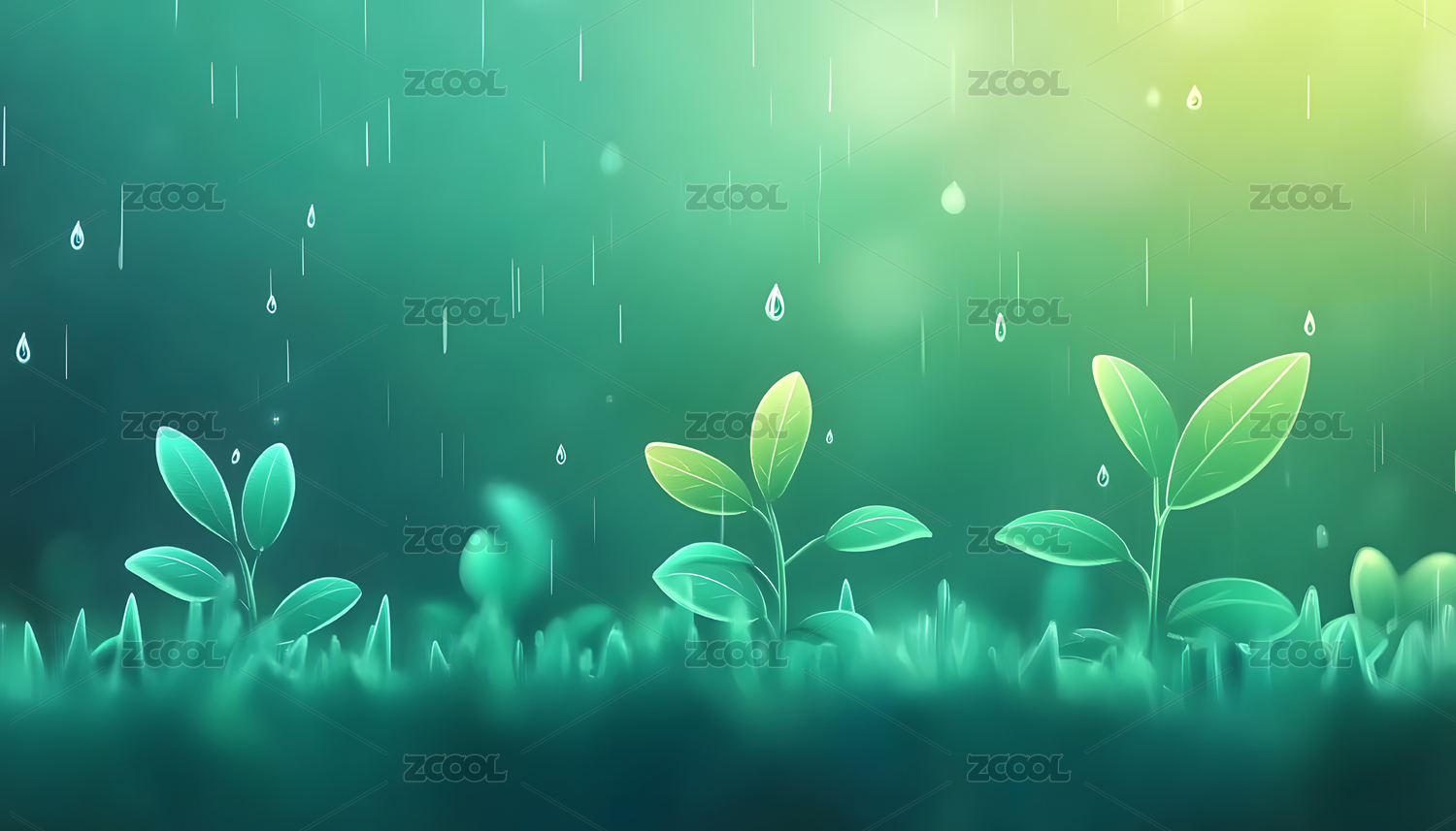 雨中绿叶插画背景图