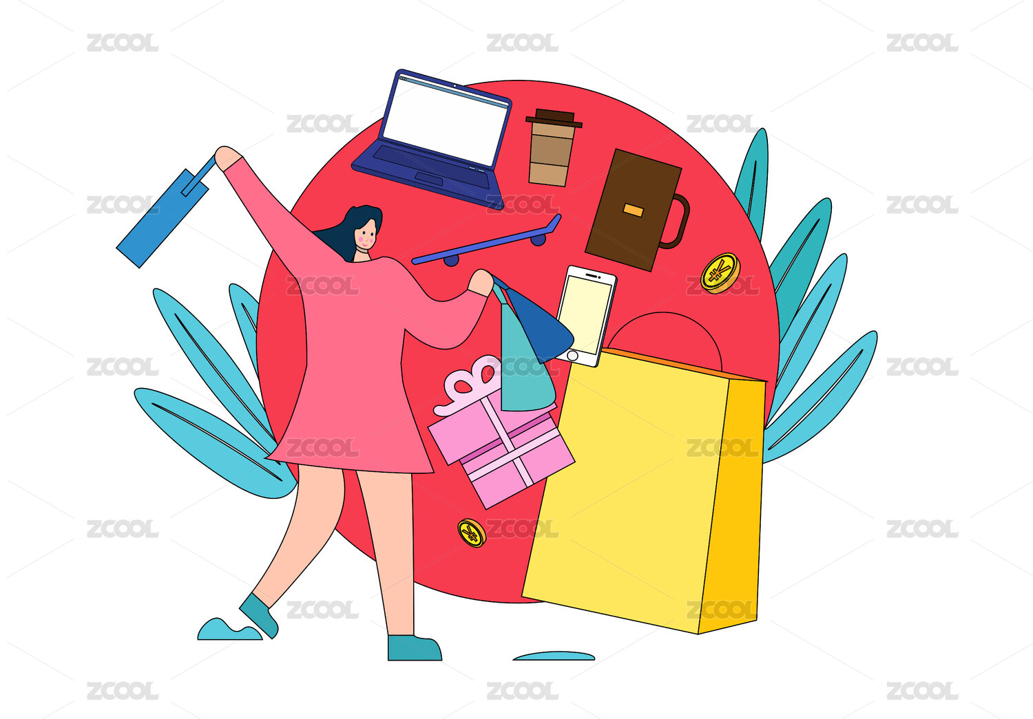 网购消费插画