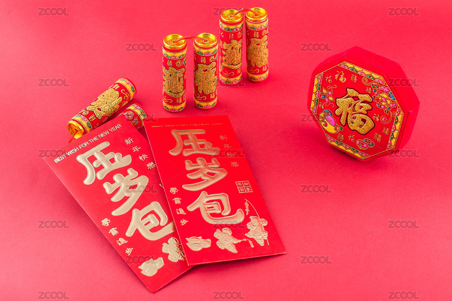 新年,元旦,过年,喜庆,红色,红包,爆竹,鞭炮,压岁钱,压岁包