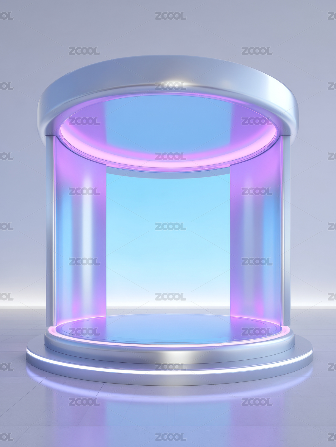赛博朋克风格 3D炫彩圆形玻璃展台