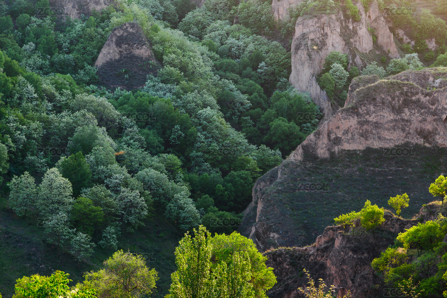 沟壑纵横的黄土高原夏天漫山遍野的绿色植被