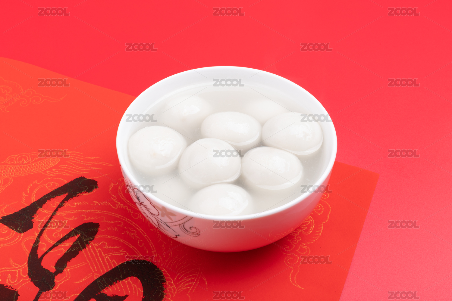 满满一碗传统美食芝麻汤圆放在红色背景上