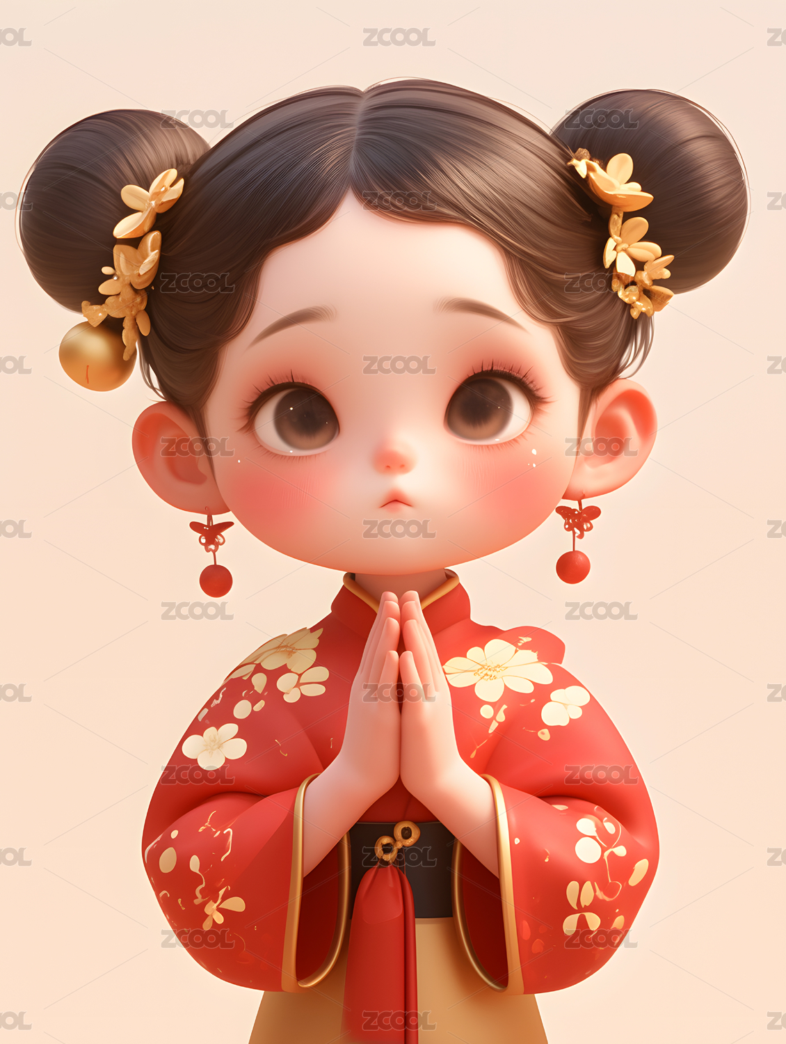 Q版,可爱,旗袍,红色,HESSUV2021,HEYYTGF2020,女孩,儿童插画