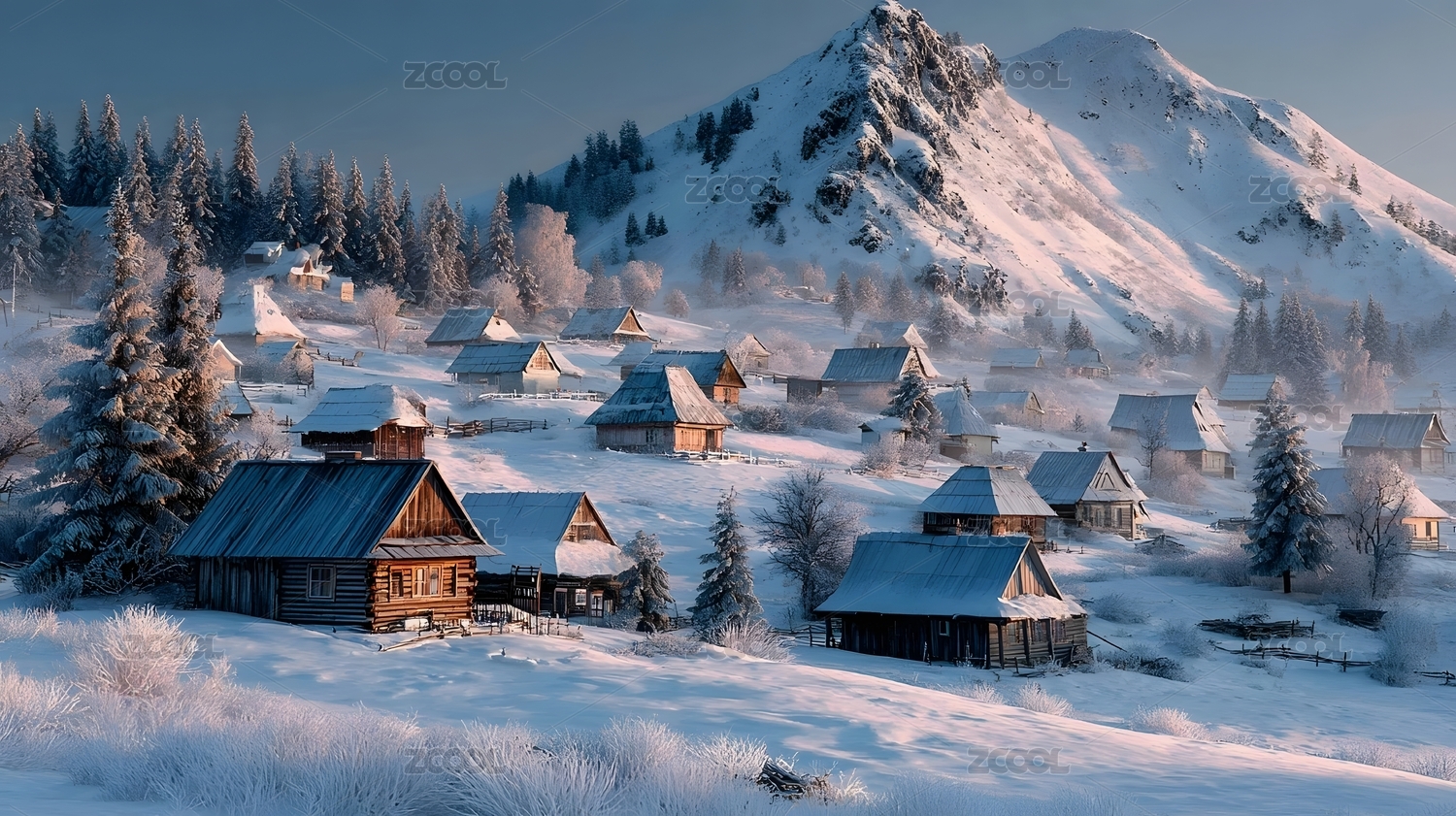冬日雪山木屋村落