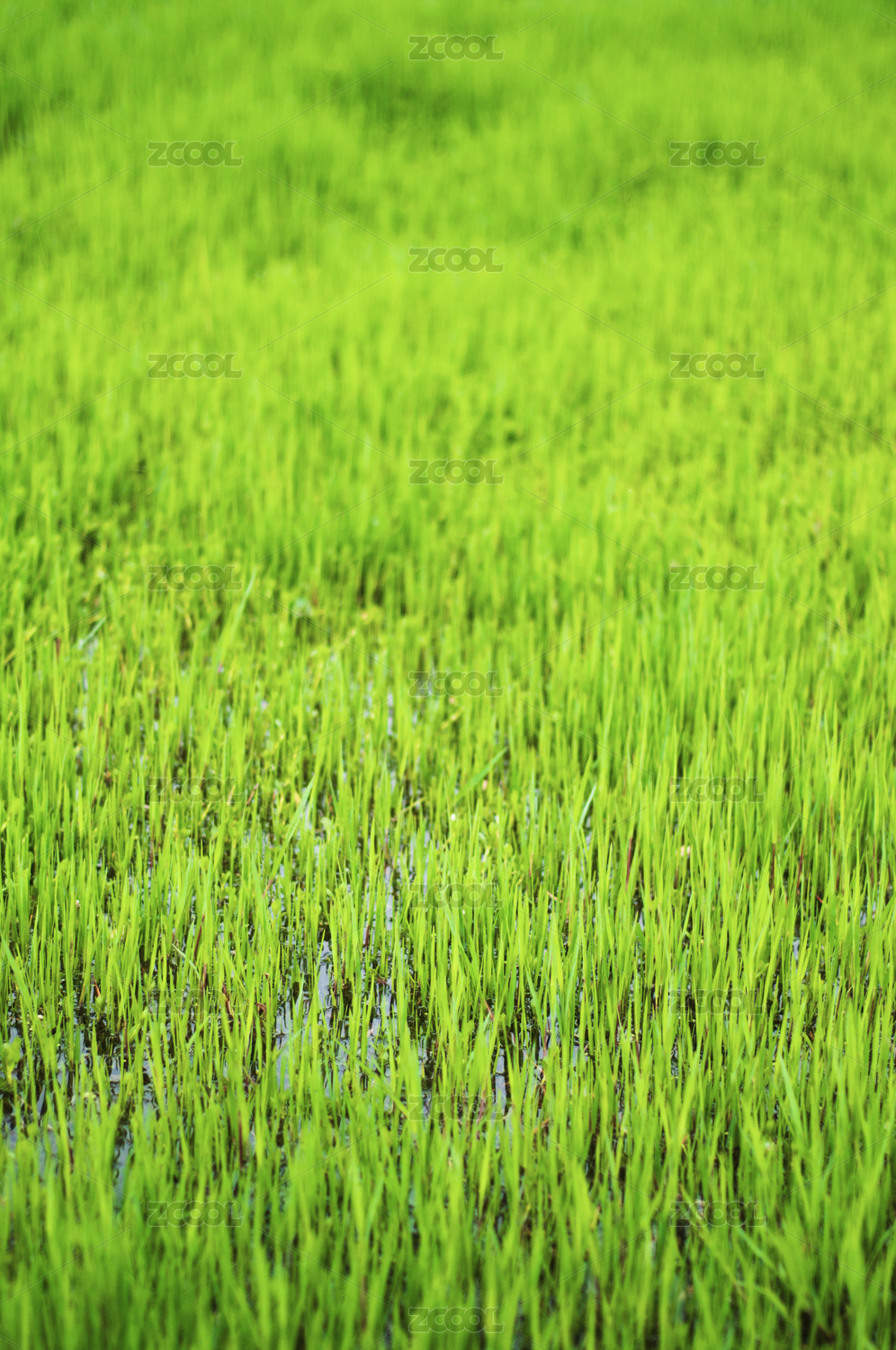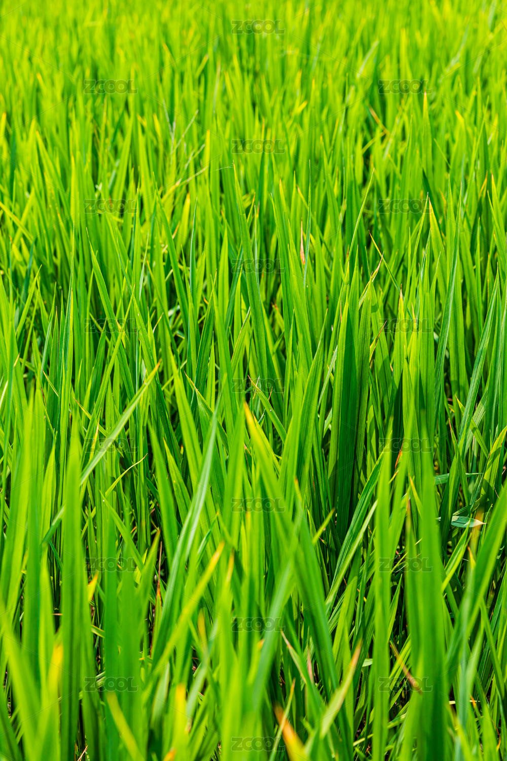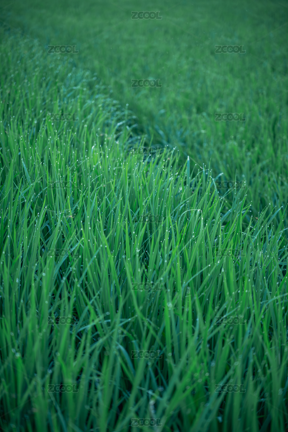 近距离微距竖幅拍摄一茬绿色的水稻苗