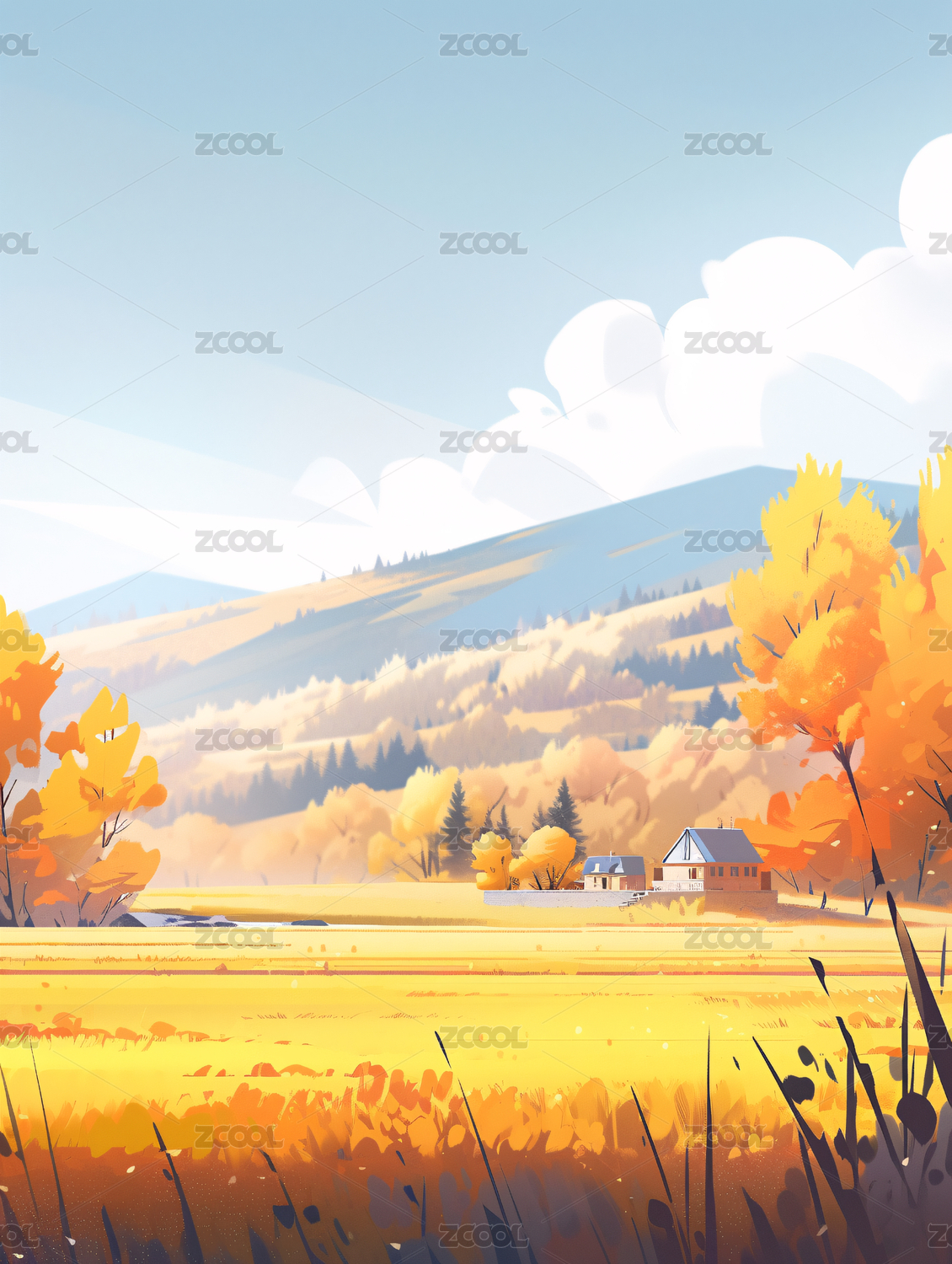 秋天秋季立秋秋分自然户外风景卡通漫画插画