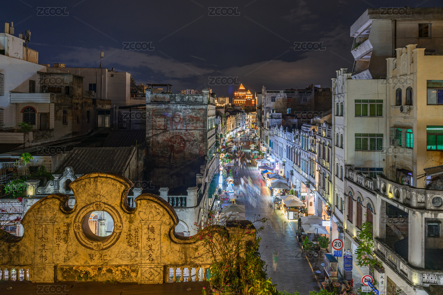 航拍海南海口骑楼老街街区历史文化建筑群落