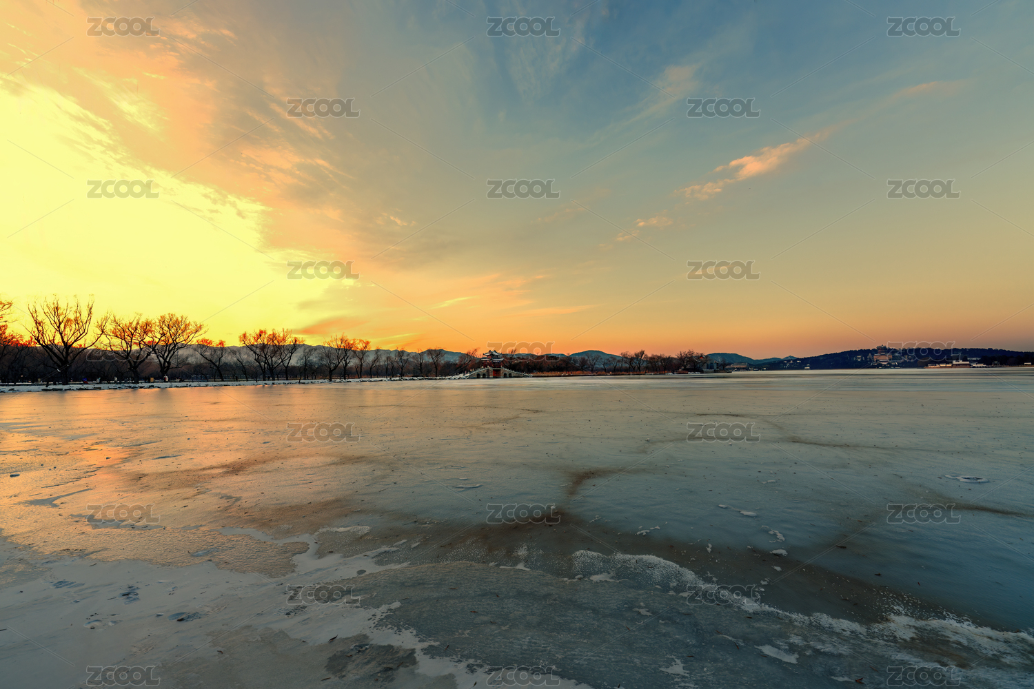 中国河北省沽源县库伦淖湖冬季冰上风光