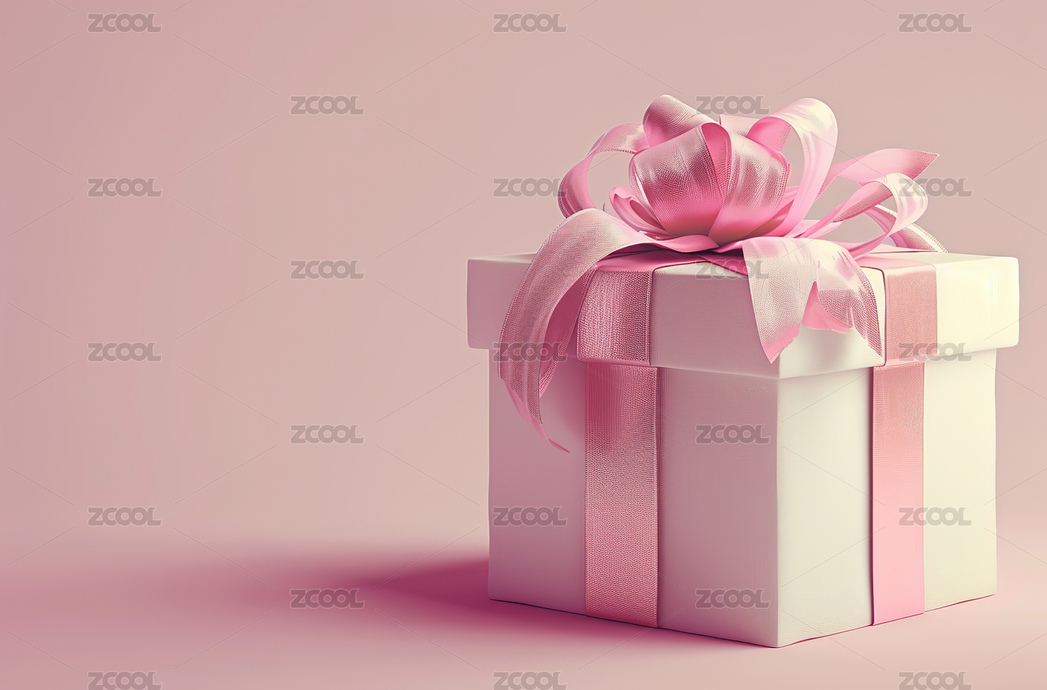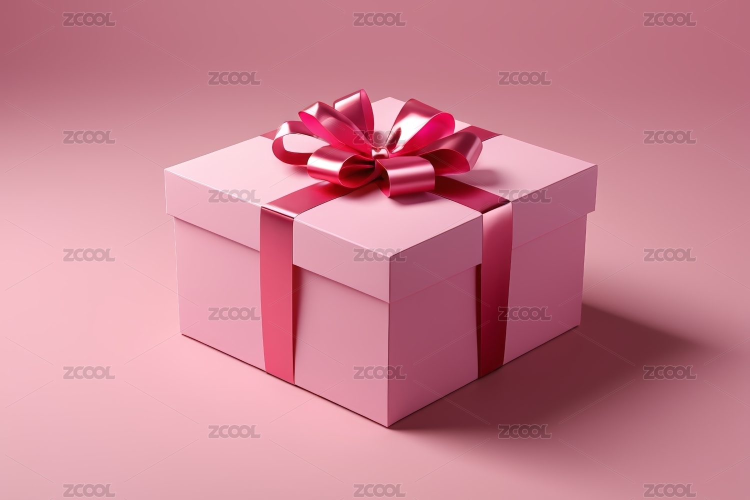 一个粉红色礼物盒子上面一个粉红色蝴蝶结图
