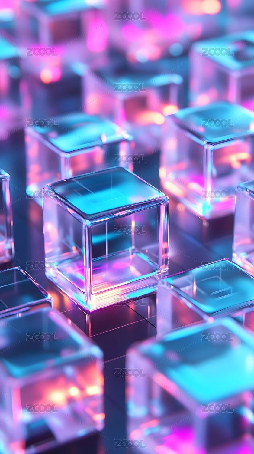 彩色透明方块交错排列,光影梦幻