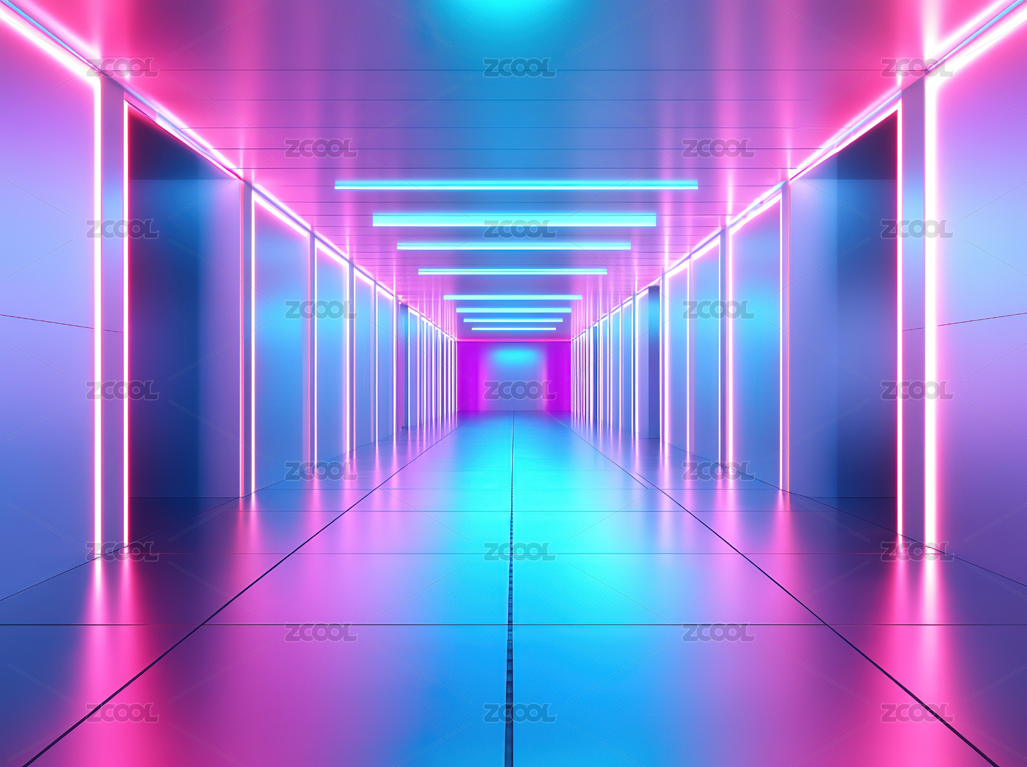 抽象科技感荧光色隧道走廊赛博朋克3D插画